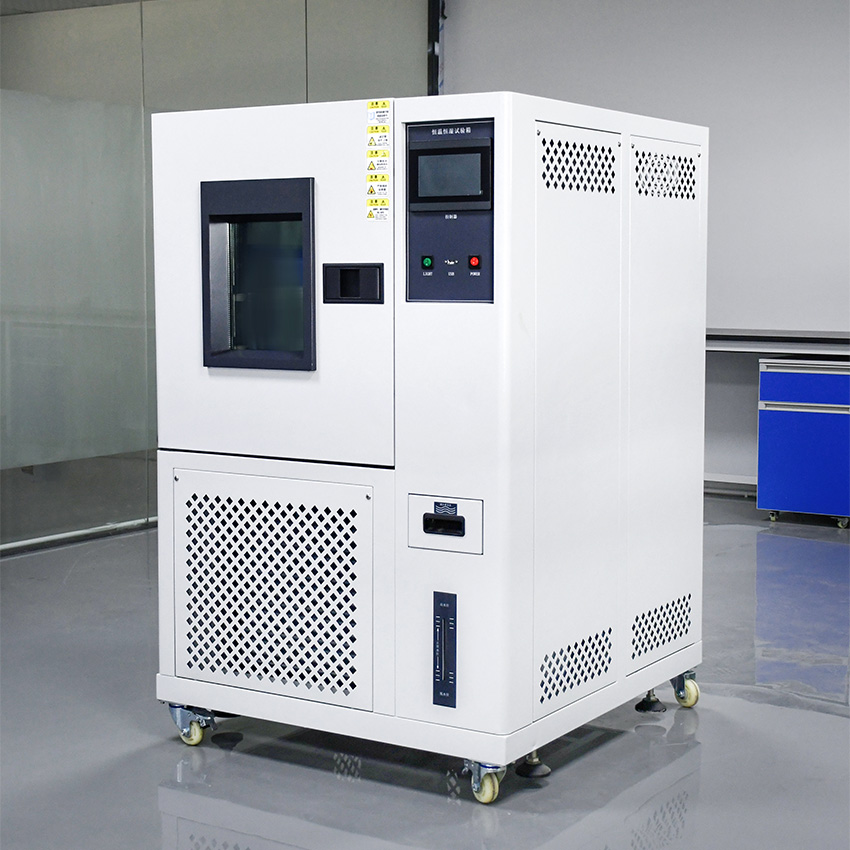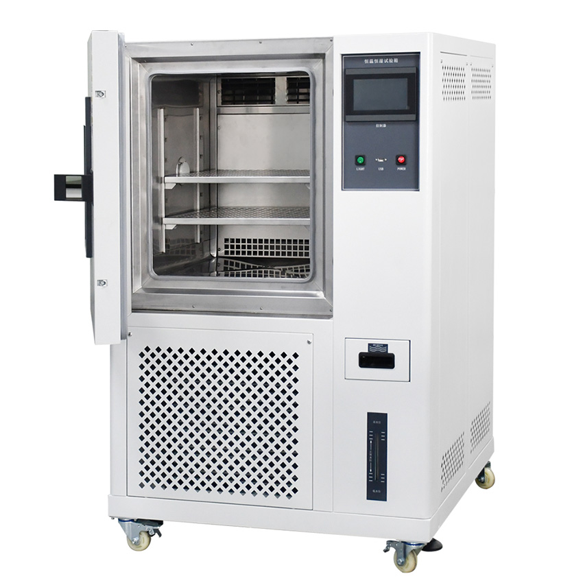 This constant temperature and humidity test chamber (GC-TH series) maintains stable humiture to evaluate material durability. With a Tecumseh refrigeration system, SUS#304 inner box, and double-layer insulated door, it prevents temperature leakage. It meets GB/T2423 and IEC 60068 standards, suitable for testing electronics, food, building materials, and auto parts. The self-developed LCD controller shows real-time data, and built-in universal wheels enable easy movement. Ideal for factories, inspection bureaus, and research labs.