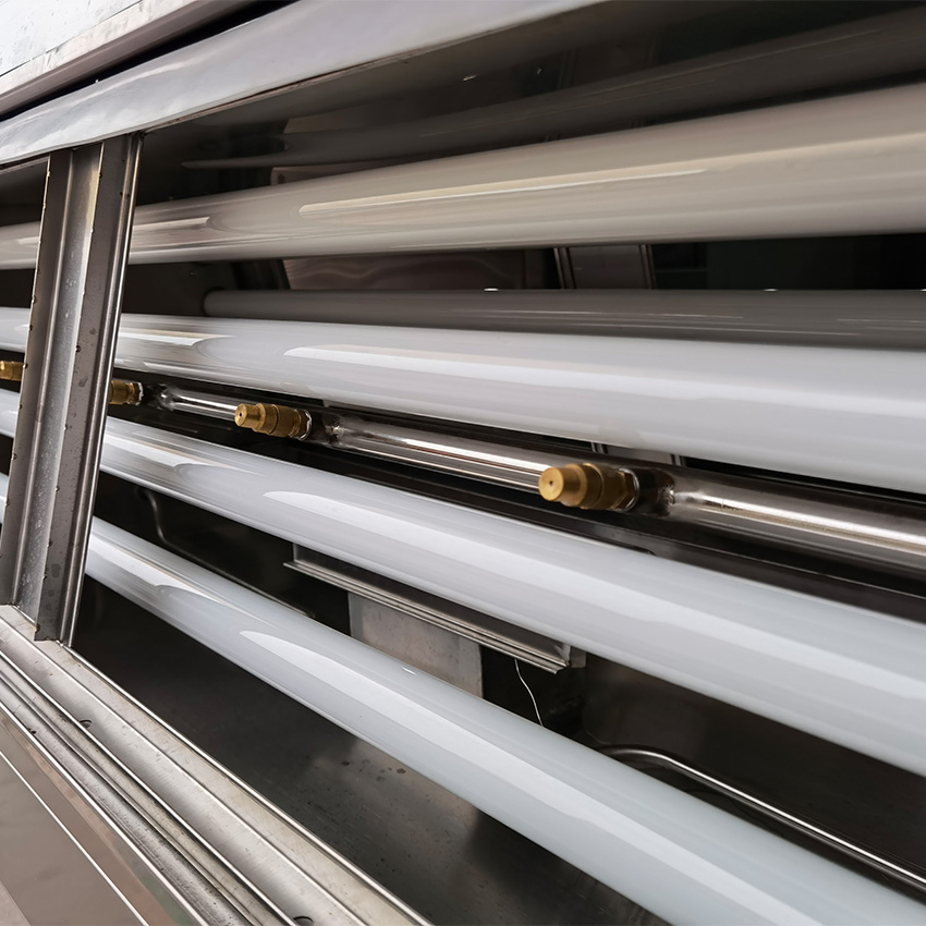 a) UVA-340: It can emit the wavelength of sunlight from 315nm to 400nm, and its radiation peak is at 340nm. UVA-340 is especially useful for controlled testing of different experiments, best simulating sunlight in the short-wave UV range.